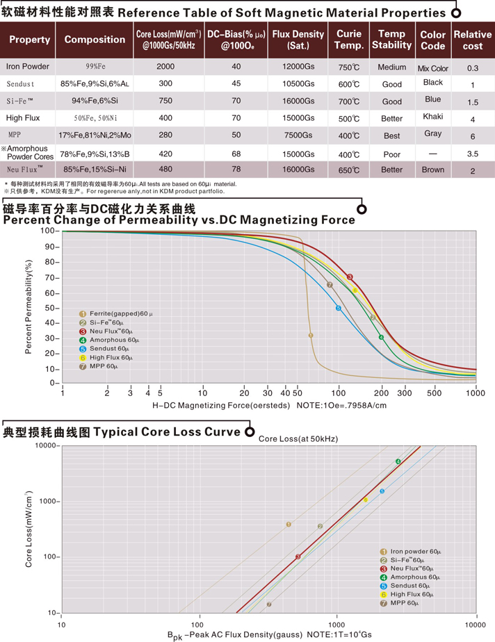 各種材料性能對(duì)比