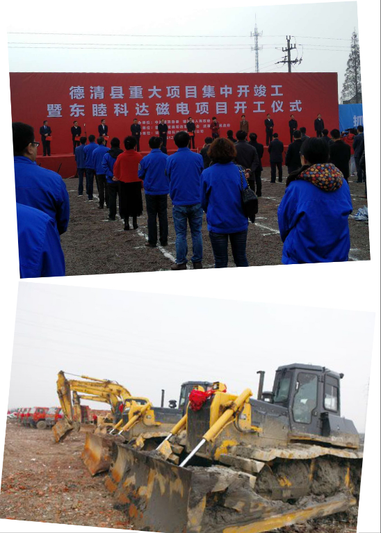 作為今年游子文化節(jié)的一項重要活動,2015年12月11日上午,浙江東睦科達磁電有限公司舉行新廠房開工儀式, 東睦科達新開工的廠房項目屬浙江省戰(zhàn)略性新興產(chǎn)業(yè)鼓勵發(fā)展類項目,獲得了縣級領(lǐng)導(dǎo)的廣泛重視。縣委書記項樂民宣布開工,縣委副書記、縣長王琴英致辭,朱法根、王順章、羅國建等縣委領(lǐng)導(dǎo)出席了開工儀式。浙江東睦科達磁電有限公司董事長曹陽先生、總經(jīng)理柯昕先生及公司員工代表也參加了本次開工儀式。